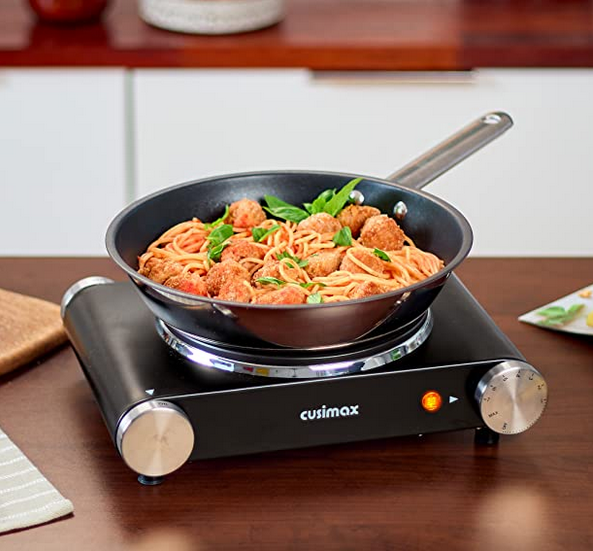 The CUSIMAX Electric Hot Plate for Cooking Portable Single Burner is perfect for anyone looking for a compact and efficient cooking appliance. Its small size makes it great for dorm rooms, offices, camping, or even your RV. Plus, it has 7 thermostatically controlled heat settings so you can cook a variety of foods like warm sauces, grilled cheese, and boiled water.