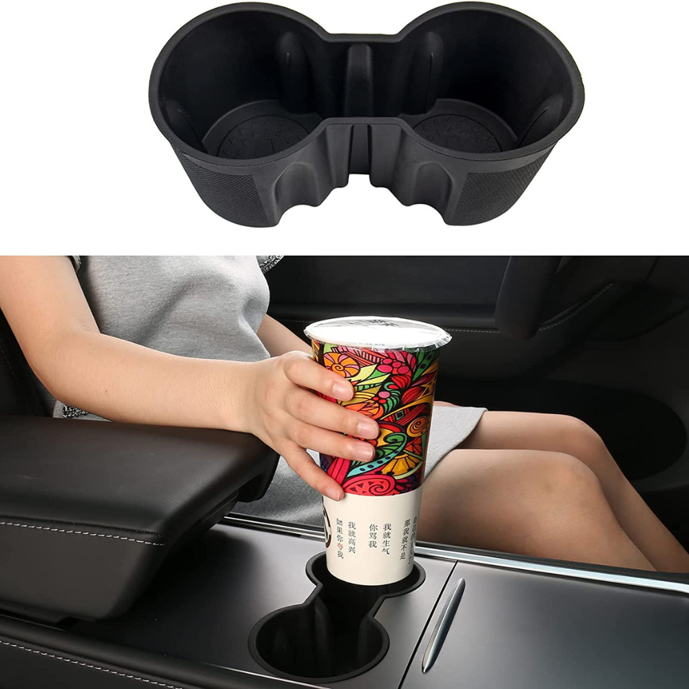 Motrobe Center Console Cup Holder Insert is the perfect way to hold drinks in your Tesla Model 3 or Model Y. It has an exclusive patent design and is an exact fit for the new console. Plus, the inside of the cup holder is covered with soft TPE rubber which can hold cups and other beverage containers without spilling.