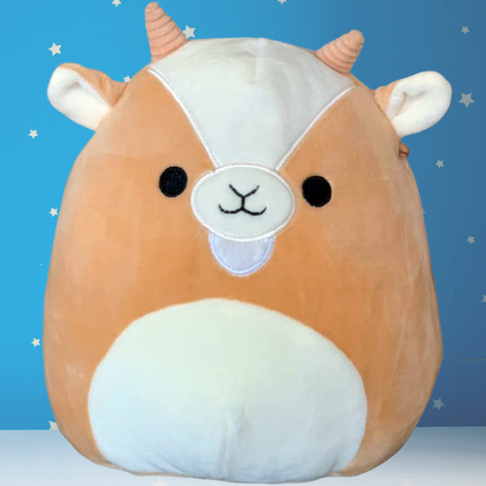 Introducing the Squishmallow Grant the Goat - a delightful farm animal stuffed toy that will make an ideal addition to your collection! Crafted with supremely plush polyester fiber, his soft and marshmallow-like texture ensures cuddlesome comfort. Plus, every one of these fluffy companions has their own unique name and story behind them, so why not bring home this friendly fellow for yourself today? Whether you’re after someone who can join in on all your adventures or act as the perfect bedtime buddy, Grant is sure to become an invaluable part of your squad! So, don’t wait - purchase your own Grant the Goat today!