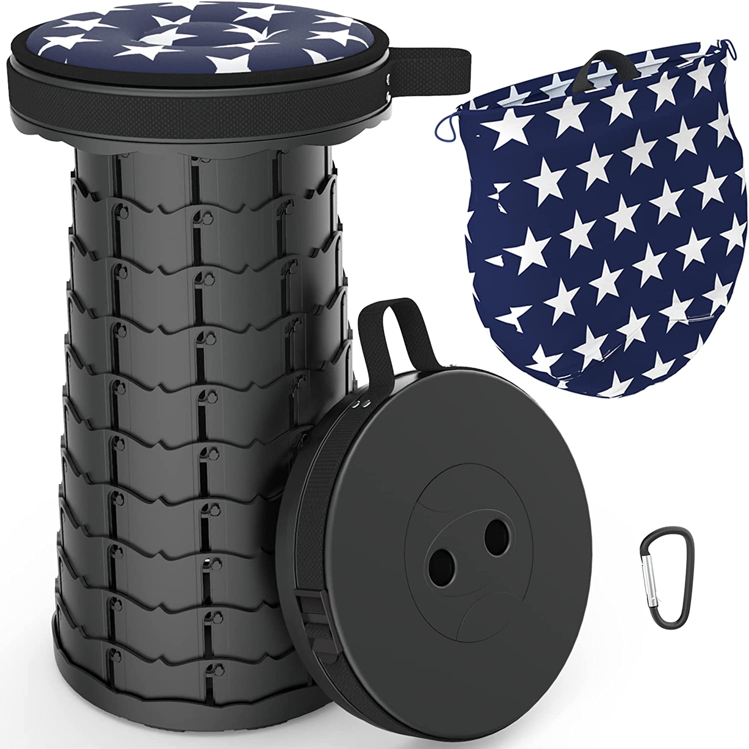 In addition to being a great stool, the Alevmoom Telescoping Stool also comes with a few extra goodies. It comes with a swivel cushion, carry bag, and carabiner, making it perfect for taking with you wherever you go. Plus, it has been designed with a US patent, so you know it's reliable and trustworthy. So why wait? Get your Alevmoom Telescoping Stool today!