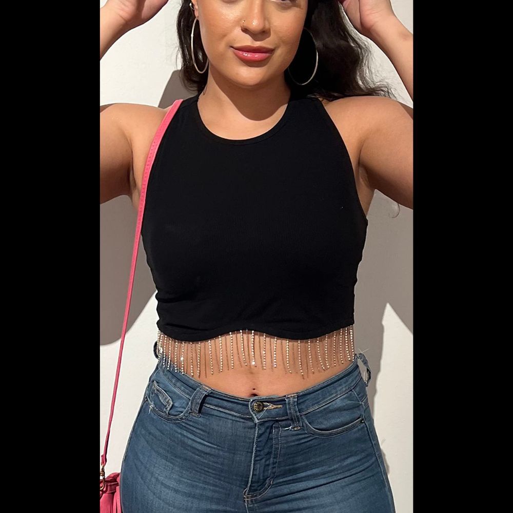 The Nlife Women's Rhinestone Fringe Crop Top is perfect for those who love to make a statement.