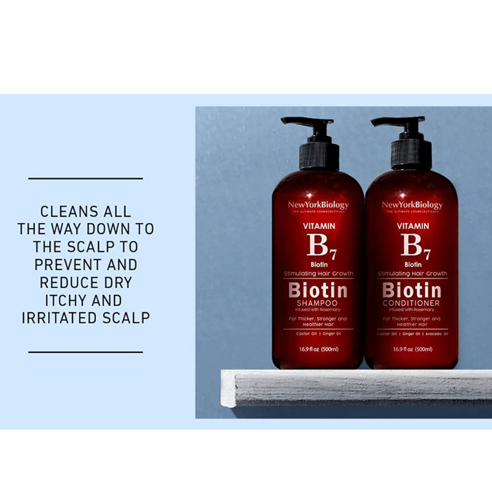 5 - New York Biology Biotin Shampoo and Conditioner Set for Hair Growth and Thinning Hair – Thickening Formula for Hair Loss Treatment – For Men & Women – Anti Dandruff - 16.9 fl Oz