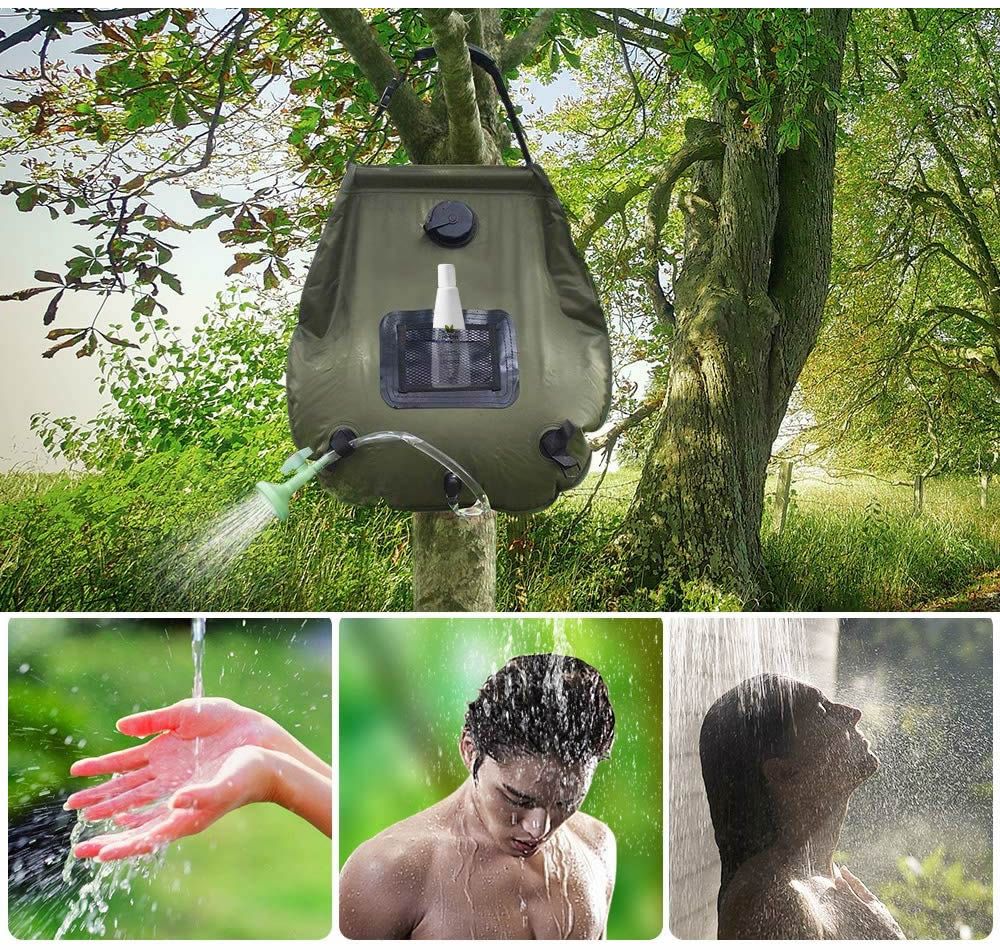KIPIDA Solar Shower Bag is the perfect glamping accessory for those who want to enjoy a hot water shower without the need for gas or electricity. This innovative shower bag has a large water capacity of 5 gallons (20 liters). The bag is designed to use solar energy to heat the water to 45°C (113°F) in a few hours, and also features a temperature indicator (°C/°F) for water temperature. Plus, it comes with a flexible hose and shower head, as well as an advanced shower head with an ON/OFF switch and switchable LOW to HIGH water current. It is lightweight and foldable, making it easy to carry and store.