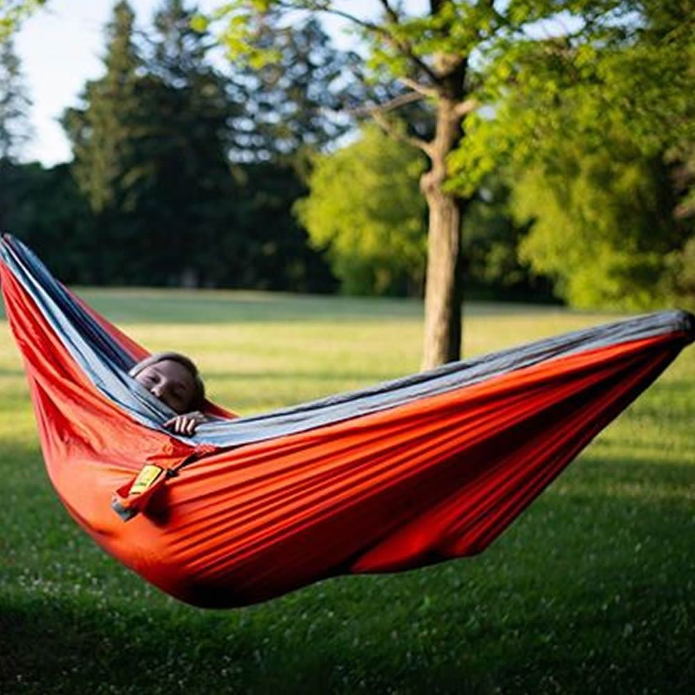 Wise Owl Outfitters Camping Hammock is the perfect glamping accessory for your next camping, hiking, or beach trip! This lightweight and convenient hammock is perfect for lounging around and relaxing by the fire, sleeping under the stars, or just hanging out in your backyard or patio on a hammock stand. Equipped with two 9ft long tree straps and carabiners, you'll be able to set up your hammock in no time. Plus, its 5 separate loops allow you to adjust it to the perfect height.