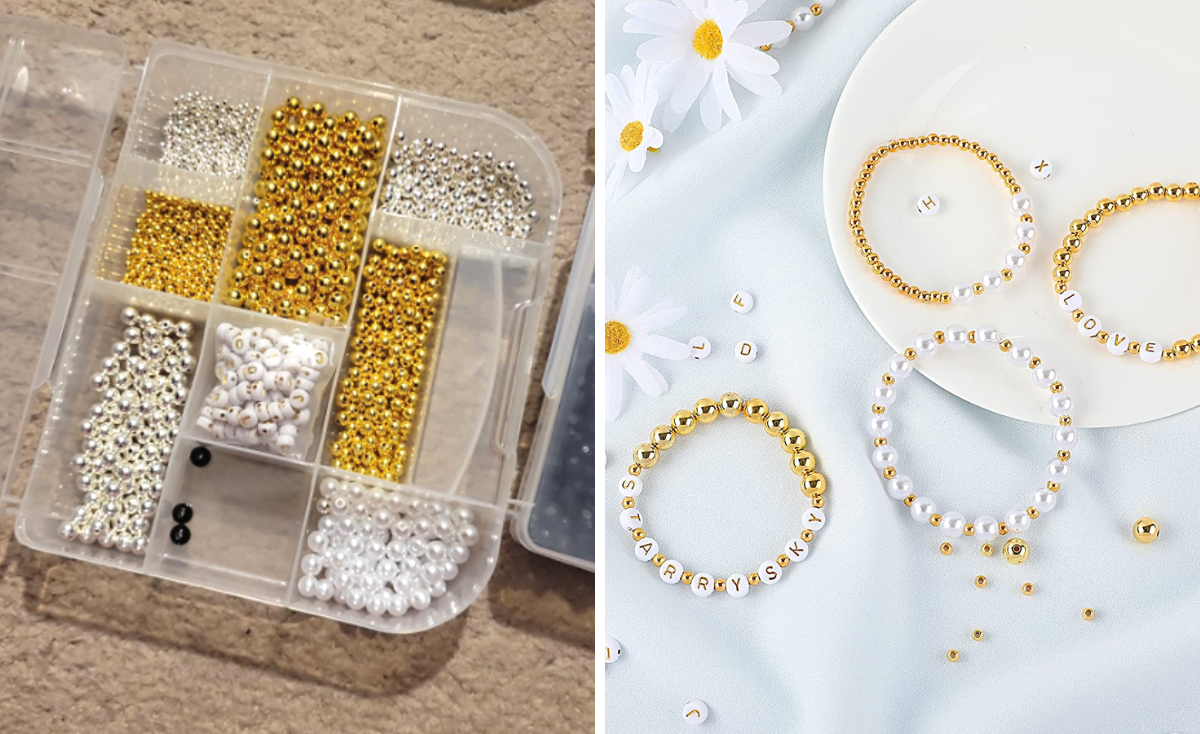 Alphabet and Gold Beads has all the components you need to make memorable, attractive jewelry pieces! These round gold beads are available in three sizes - 4mm, 6mm and 8mm. Combine them with our letter alphabet beads for a tailored look by spelling out names or words. The white pearls lend an elegant flair. Each kit additionally contains 0.8 mm thick elastic string as well as DIY craft projects gift making supplies for your convenience! If you're seeking beads that have an entirely unique look, then Alphabet and Gold Beads are the perfect choice! So, let your imagination run wild and create beautiful personalized jewelry today!