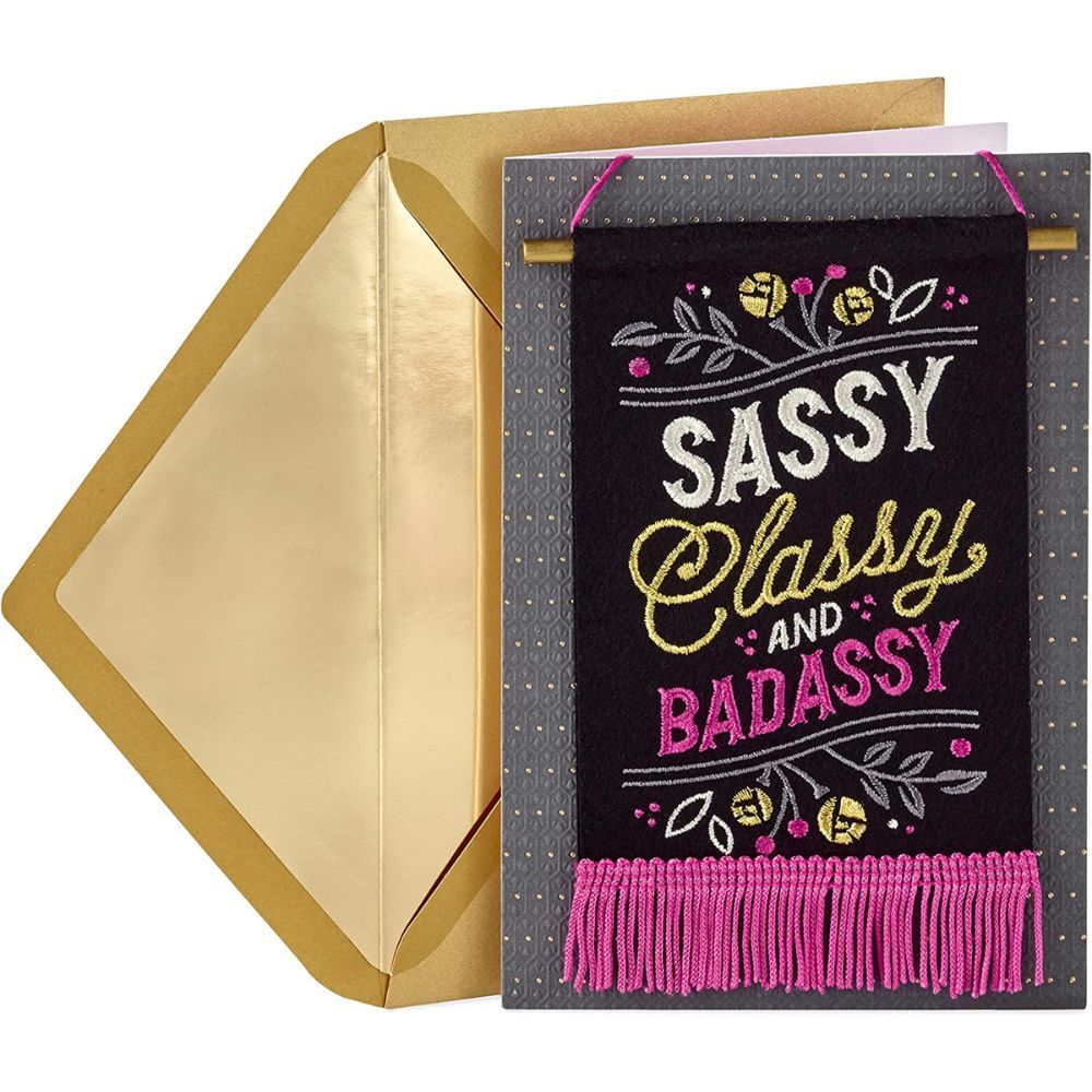 This lovely card is sure to make your birthday girl feel extra special with its removable "sassy, classy, and badassy" flag and warm sentiment inside.