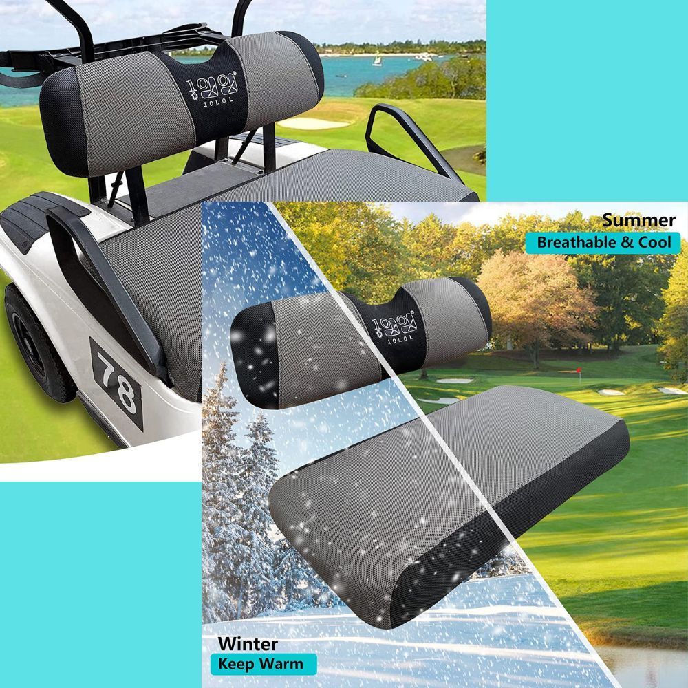 Our 10L0L seat covers help you make your golf cart look like new again. They are made of air mesh breathable fabric, are durable, non-slip and anti-static, and extend the life of your golf cart seat.