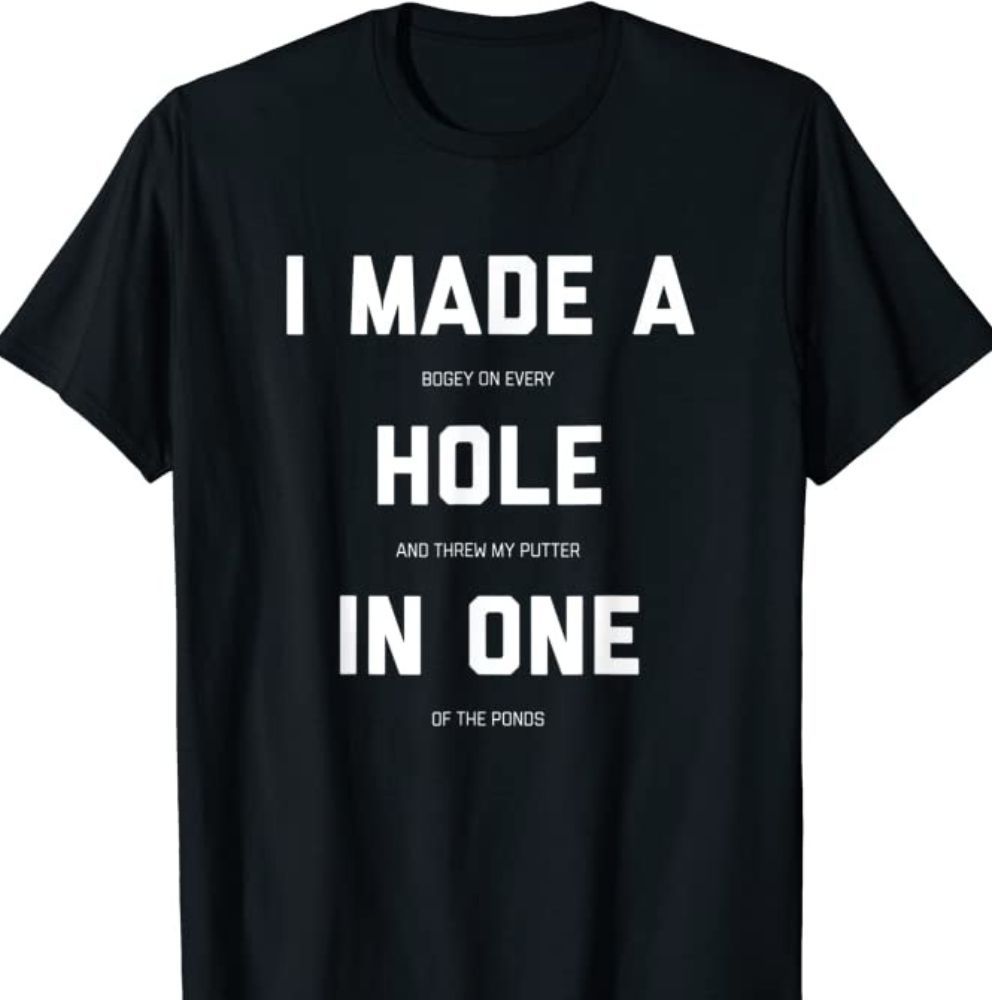 Make your golfing friends playing partners and family laugh out loud with this funny golf shirt! The Hole In One Golf Gag Gifts T-Shirt is perfect for any golfer in your life who enjoys a good laugh.