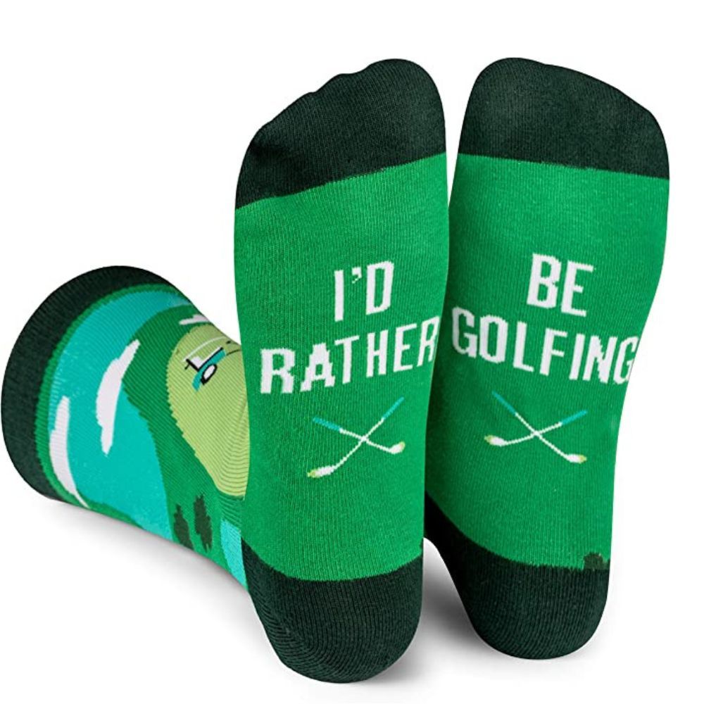 They’re designed with a colorful golf course scene and a secret message hidden on the bottom which reads 'I’d Rather Be Golfing.' Perfect for golfers of any age and gender, these funny novelty socks make a unique and memorable gift for birthdays, Father’s & Mother's Day, and special occasions.