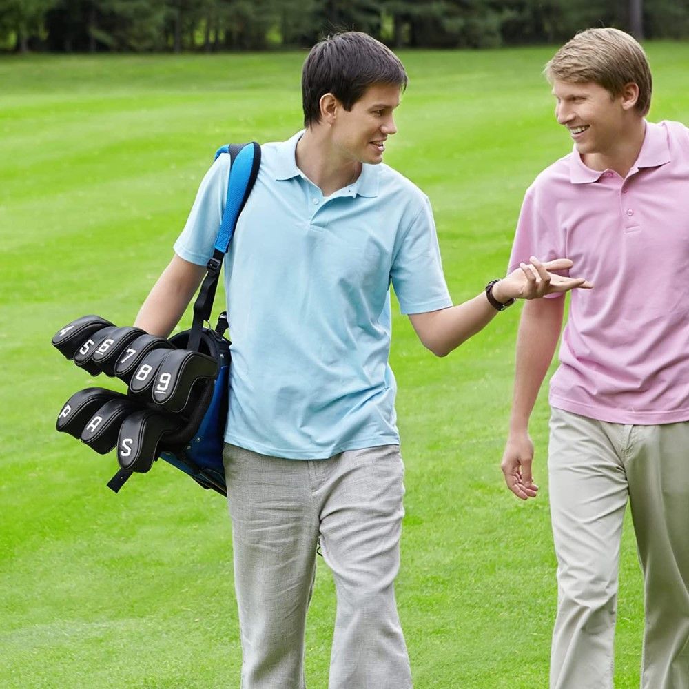 They come in a set of 10 pieces, including 4, 5, 6, 7, 8, 9, P, A, and X. They are also oversized, so they fit both regular and oversize irons. With their price and their eye-catching design, these golf club head covers not only make a great addition to your golf set, but also make a great gift for any golfer.