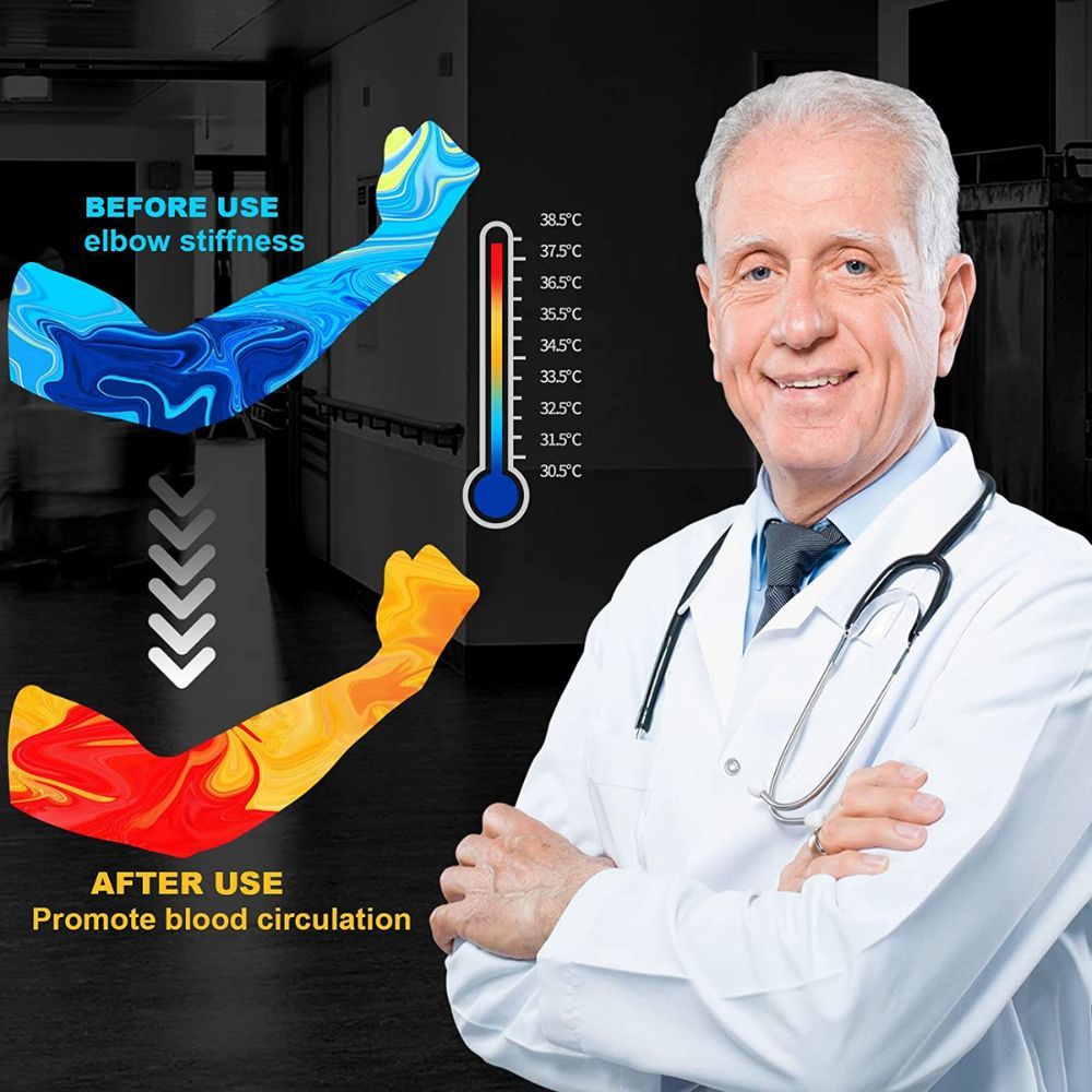 The sleeves are made from top quality breathable yarn, making them comfortable and seamless, as if they were a second skin. They are perfect to wear at home, work or in the gym, and they can be worn during the day and night. They can be used as a golf elbow brace or tennis elbow brace.