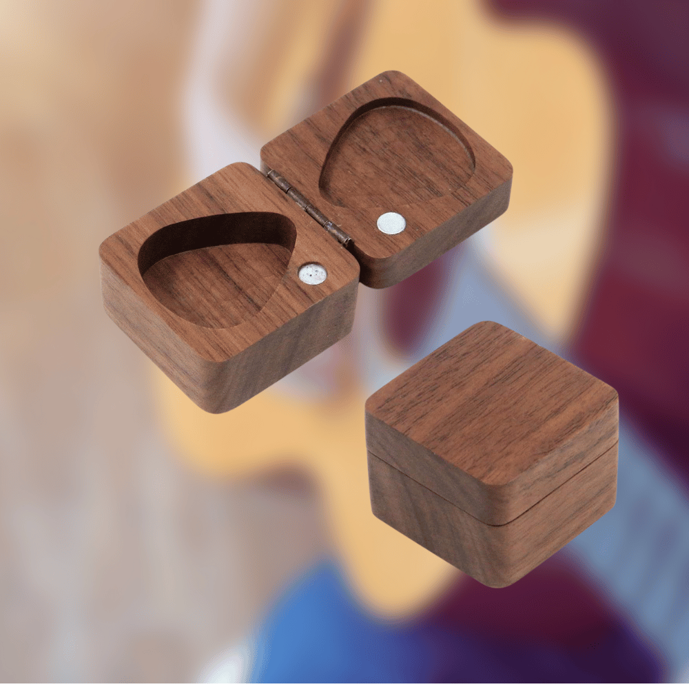 The Geesatis Guitar Pick Box is the perfect accessory for the minimalist guitar player. It is small and lightweight, but still has enough space to store up to six guitar picks. It is made from natural wood, giving it a classic and timeless look. The craftsmanship is exquisite, and it is built to last. With its convenient size, you can take it anywhere you go and always have your guitar picks ready to go.