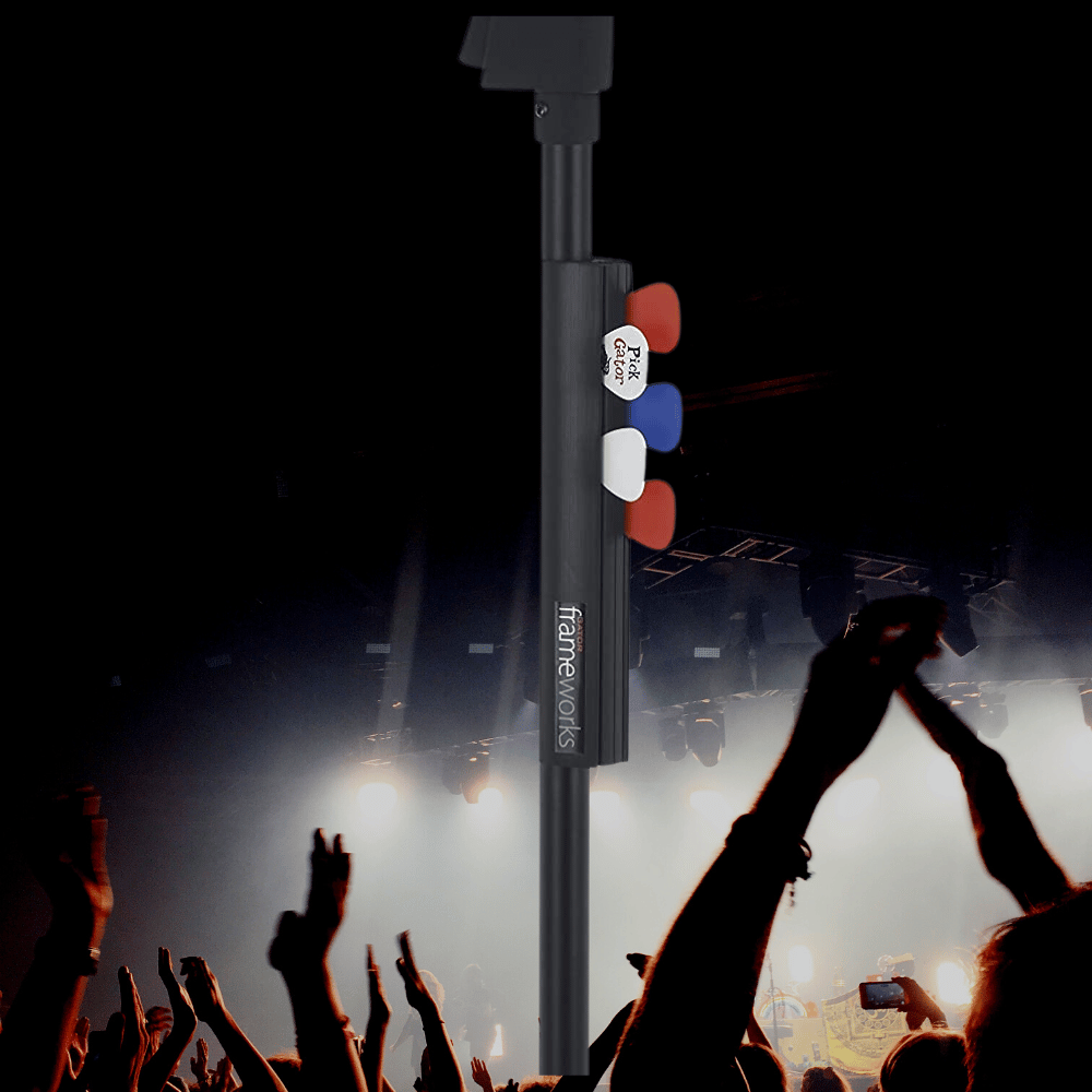 Gator Frameworks Microphone Stand is the perfect solution for guitarists who need to keep their picks handy. The dual row holder fits up to 12 guitar picks, and the clips on to microphone stand tubing for easy access. Plus, it includes a removable slide holder attachment for added convenience.