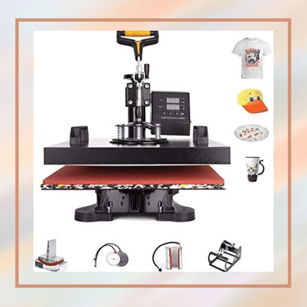 CREWORKS 15"x 15" 5-IN-1 Tshirt Printing Press Machine is perfect for bringing your designs to life on t-shirts, bags, mouse pads, and other flat objects. Not only that, but it also features attachments that will let you transfer your artwork onto curved surfaces such as mugs, hats, plates, shoes, and more! The thick platen features a doubled heating element for faster and more even heating, making this a must-have for any serious t-shirt printing enthusiast.