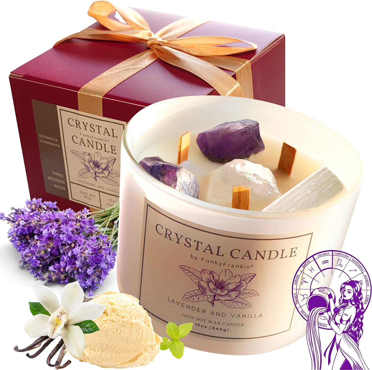 FunkyFrankie - Healing Crystal Candle, Soothing Lavender Scent For Manifestation
