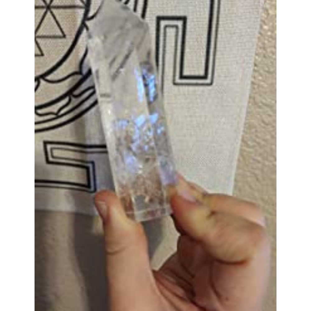 The crystal wand’s center point focuses its energy so that it can be directed and used on a specific part of the body for emotional healing and spiritual development.