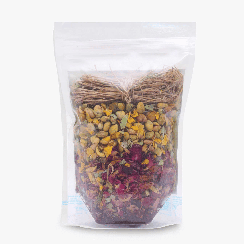 Making your own herbal hair oil is a great way to nourish and hydrate your hair naturally without spending too much money. It's super easy and only takes three simple steps. First, open the pack of herbs and add them to a container.