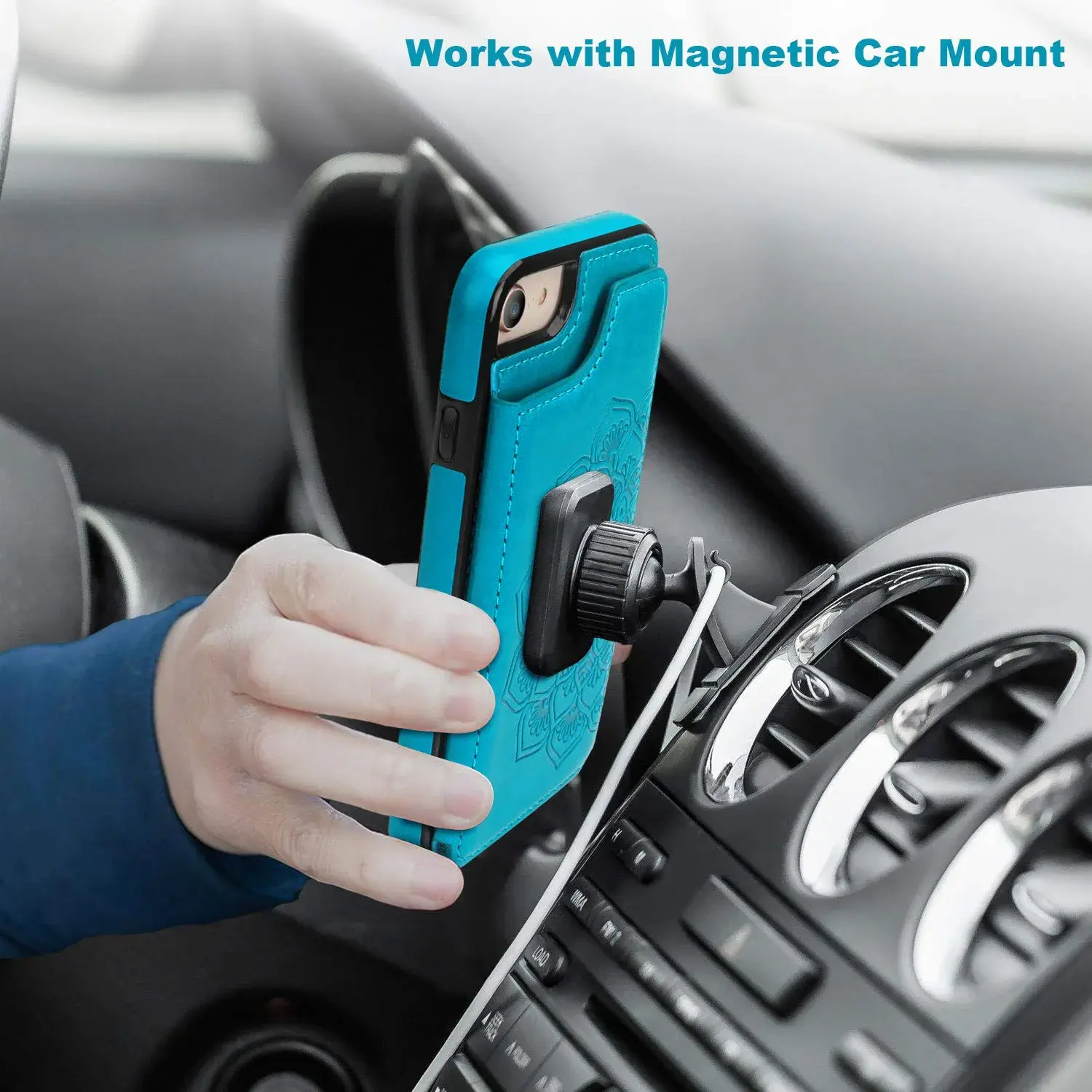 The Vaburs Wallet Case for apple iPhone is also compatible with a magnetic car mount. It has metal plates incorporated in the flap, so no additional plate or adhesive is needed.