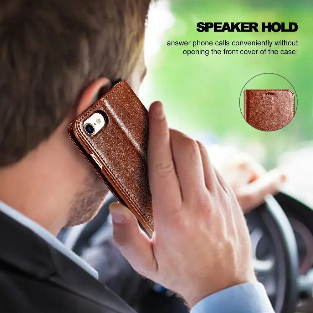 The iPhone 7 ICARERCASE Leather Wallet is the perfect case for men who want to combine their wallet and phone case into one convenient accessory.