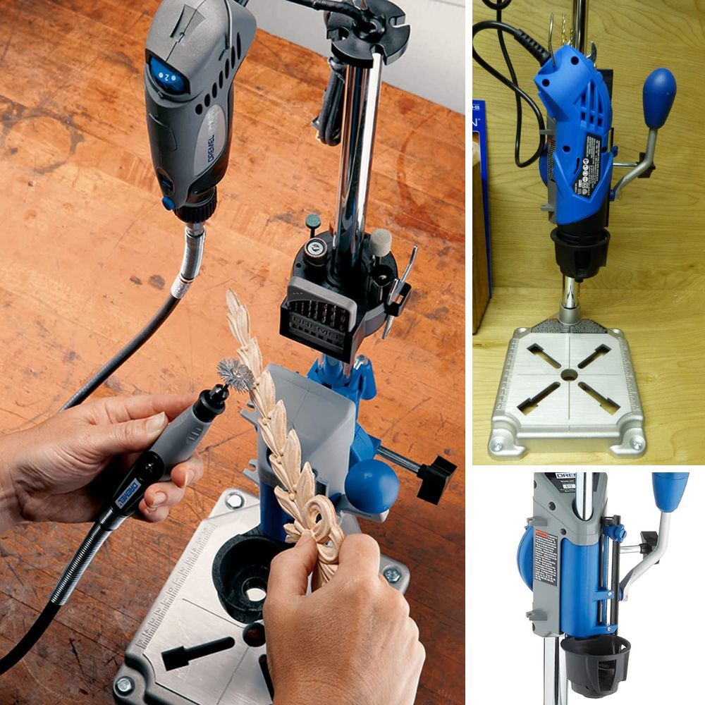 The Dremel Drill Press Rotary Tool Workstation Stand with Wrench is the perfect tool for any DIY enthusiast. It’s a drill press, tool holder and flex shaft holder all in one.