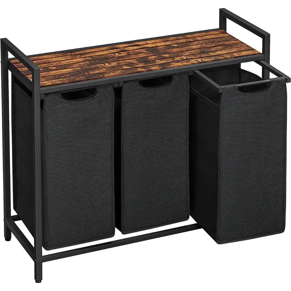 Vasagle Laundry Sorter is the perfect solution for keeping your laundry organized and out of sight. It features 3 divided laundry bags with a shelf top to keep your clothes hidden, adjustable feet for easy leveling, and removable bags for added convenience.