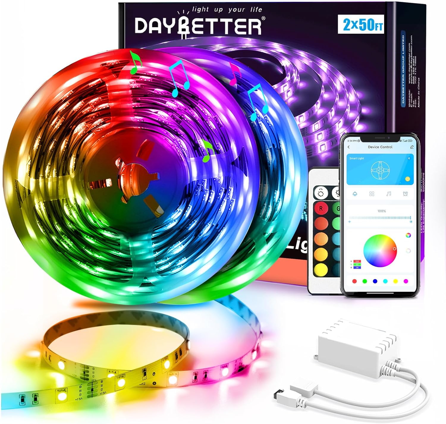 Daybetter Music Sync LED Strip Christmas Lights 100ft 5050 RGB