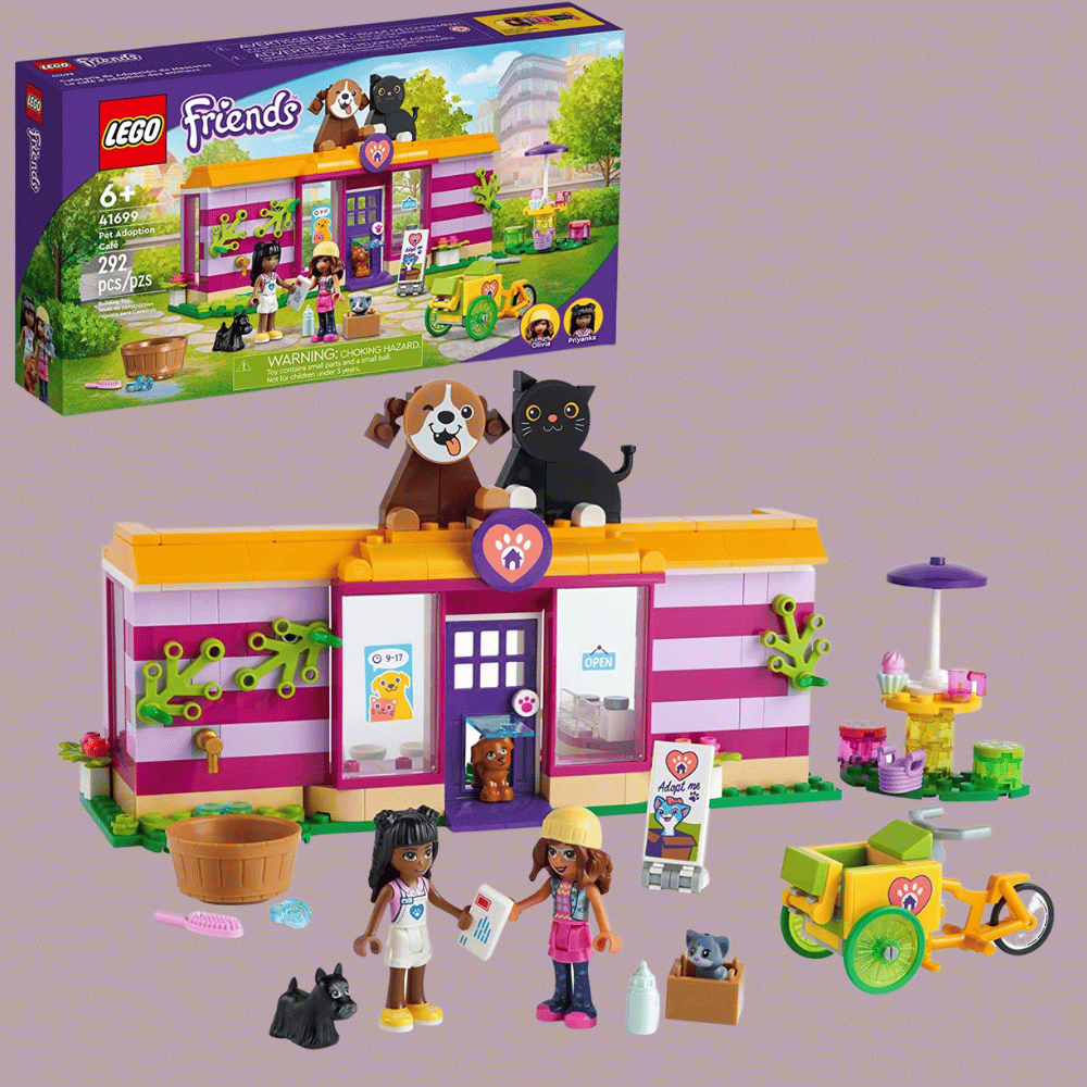 Let your kids help animals in need with the LEGO Friends Pet Adoption Café. This creative play set is designed to provide hours of fun-filled storytelling, with a café, outdoor seating area, cozy reception area, and a rescue trike.