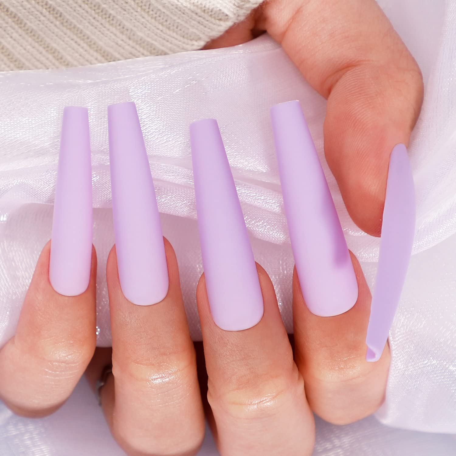 Embrace the allure of the BettyCora Purple Press-On Nails. These XXXL extra-long coffin nails feature a stunning ombre gradient that transitions from a deep purple to a soft lilac. The kit includes everything you need for a full manicure: 24 nails in 12 sizes, nail glue, a nail file, adhesive tabs, a wooden stick, and an alcohol-wipe cotton.