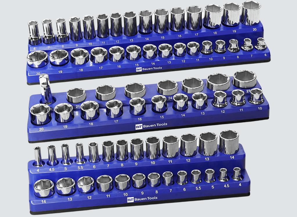 The Bauen Tools Magnetic Socket Organizer is the perfect tool for organizing and protecting your sockets. It is designed to hold a full range of deep and shallow sockets, making it suitable for 1/2-inch, 3/8-inch & 1/4-inch drive sizes.