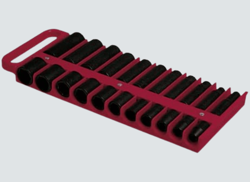 This holder features powerful magnets that securely hold the sockets in place, while rubber feet on the tray prevent it from scratching your toolbox. With this product, you can keep all of your sockets organized and accessible in one convenient location.