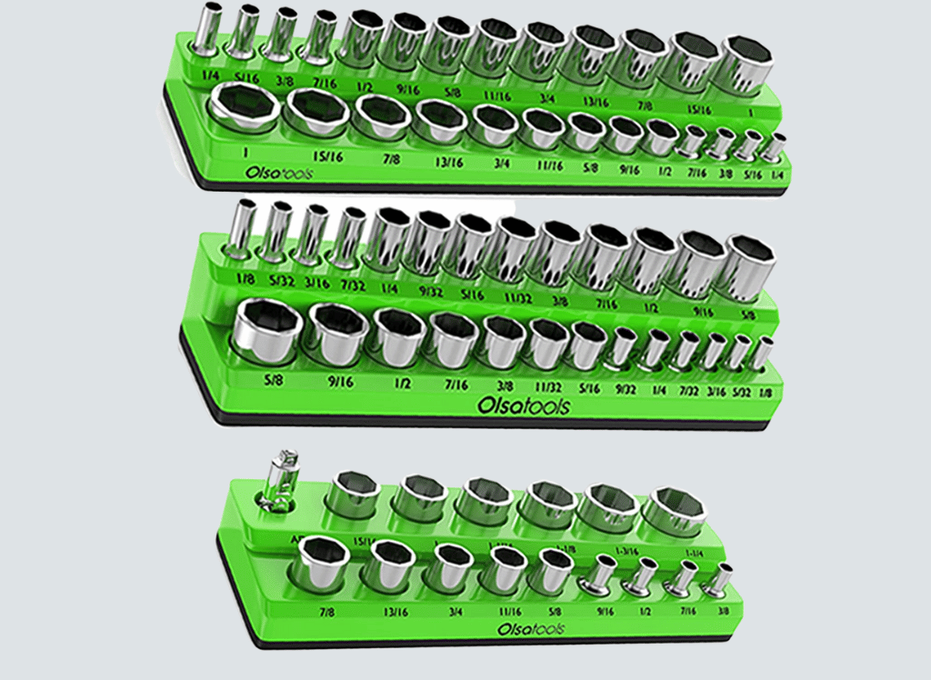 The Olsa Tools Magnetic Socket Organizer is the perfect solution for organizing and storing your 1/4", 3/8" and 1/2" drive SAE sockets. This handy set kit is capable of storing up to 68 sockets, allowing you to keep all of your tools in one convenient place.