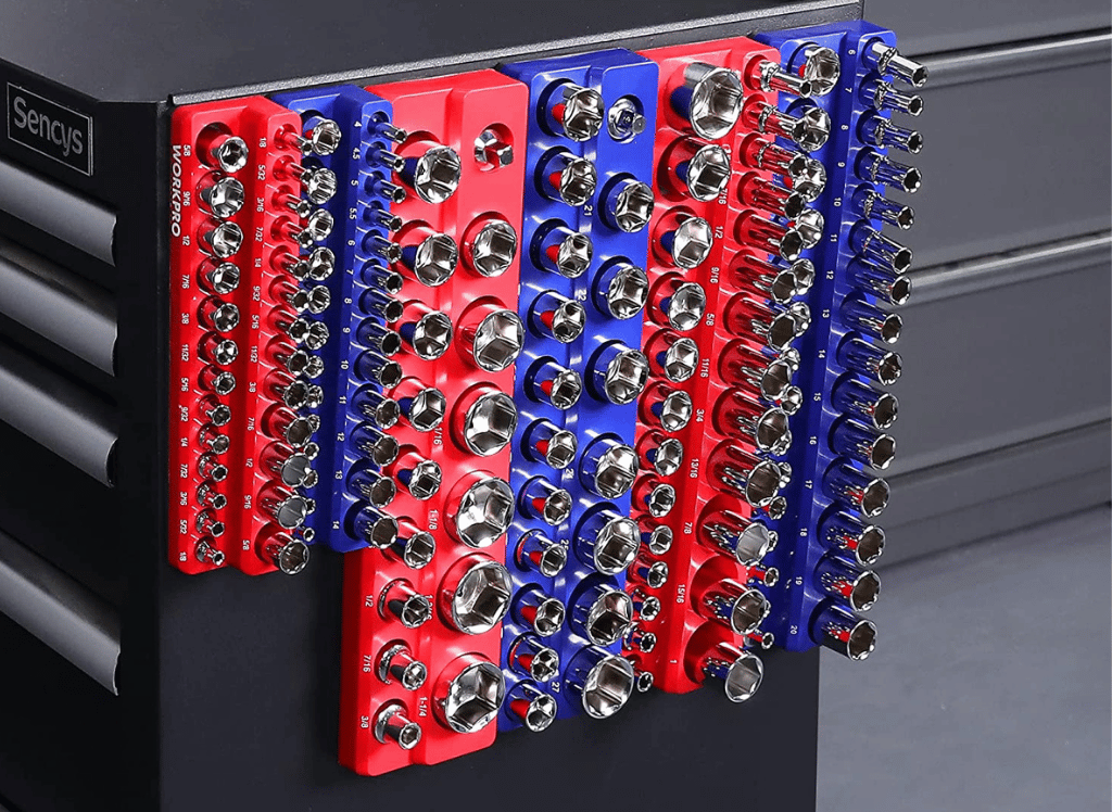 You won’t have to worry about losing your sockets ever again since all three drive sizes (1/2-inch, 3/8-inch & 1/4-inch) are included and each socket size is marked. This product brings your tool storage dreams into reality and makes finding what you need quicker and more efficient than ever before!