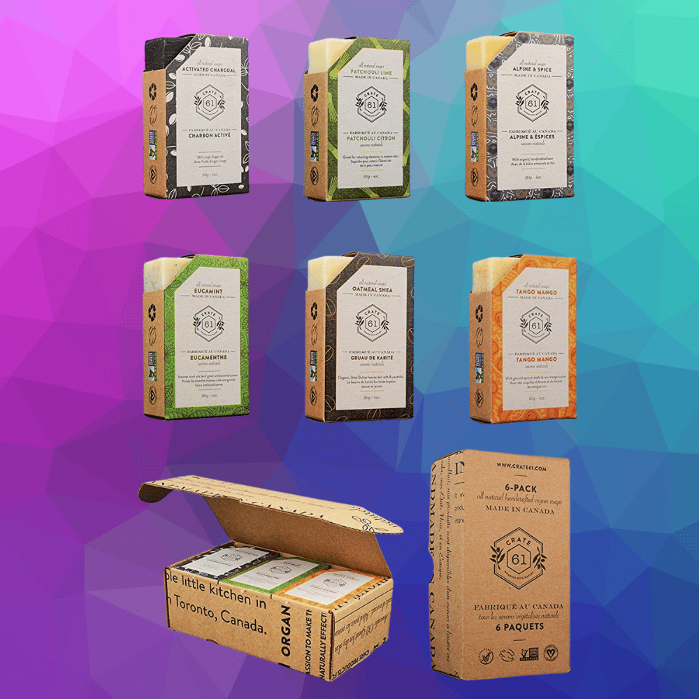Crate 61's vegan natural bar soaps are the perfect choice for anyone looking for a natural bar soap that's both vegan and cruelty-free. Their soaps are made with cold-pressed extra virgin olive oil and unrefined avocado oil, which create a rich, bubbly lather that leaves your skin feeling soft and moisturized. Plus, they have a wide selection of scented bars, including Alpine & Spice, Eucalyptus Mint, Tango Mango, Oatmeal Shea, Patchouli Lime, and Activated Charcoal.