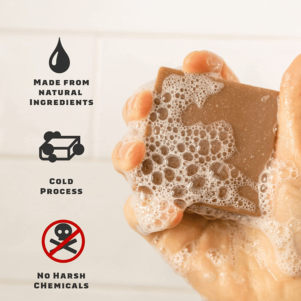 Additionally, a man's soap should also contain natural ingredients and be free of harsh chemicals, such as parabens, sulfates, and phthalates, which can be irritating to the skin.