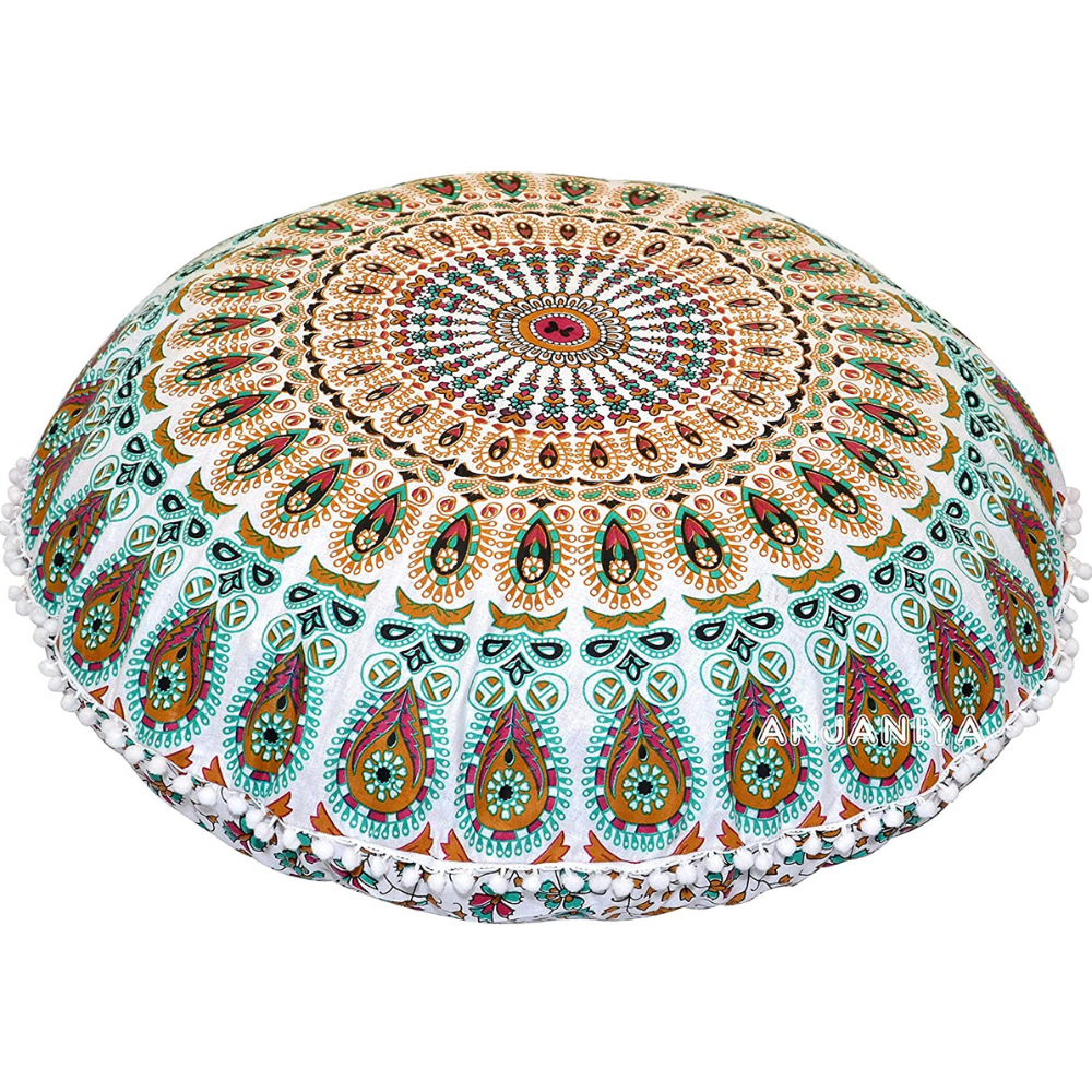 ANJANIYA - 32" Peacock Mandala Bohemian Yoga Meditation Floor Pillow Cover is the perfect addition to your home, picnic, beach, garden, balcony, tent, caravan, car, or meditation area. This comfortable cover is made of 100% cotton and is the perfect height for yoga relaxation and comfort. The cover is 32 inches in diameter and comes in a beautiful white multi color that is sure to catch the eye. It also features a front zippered cover closure which makes it easy to put on and take off.
