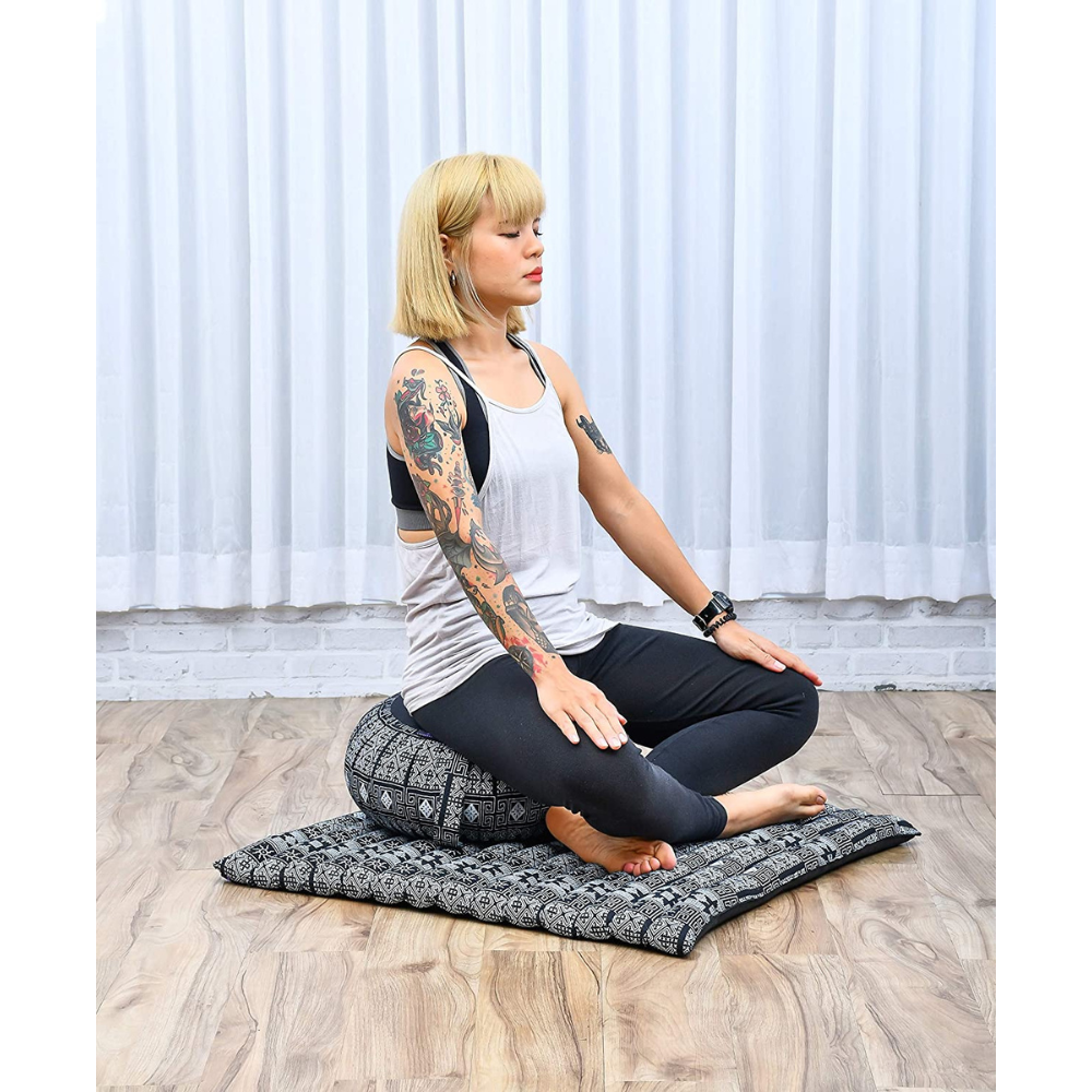 LEEWADEE - Meditation Cushion Set – 1 Round Zafu Yoga Pillow and 1 Square Roll-Up Zabuton Mat Filled With Eco-Friendly Kapok