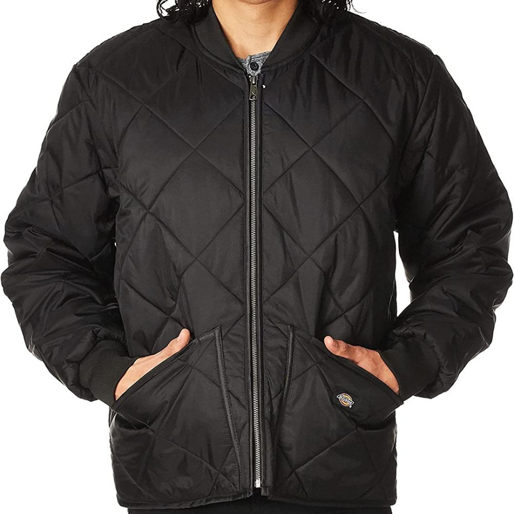Dickies Diamond Quilted Jacket is Amazon's choice for those looking for a bomber jacket fit. Available in both black and navy blue, the fabric is made from 100% Nylon and the lining is constructed of 65% Polyester, 35% Cotton.