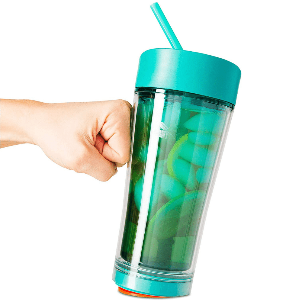 Whether you're indoors or outdoors, the flat top lid and removable straw make this tumbler a versatile drink holder. Made from durable Tritan plastic, the Mighty Mug can survive accidental drops without spilling a drop.