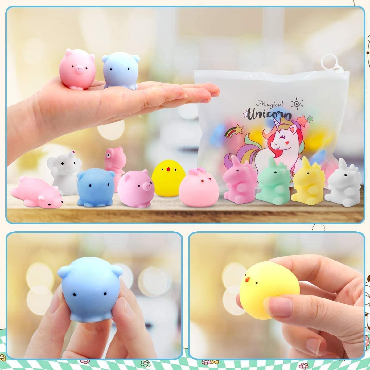 Not only are these mini squishy toys a great way to show your mood, but they are also perfect for helping little ones to distinguish animals' types and features, recognize colors, and develop intelligence and hand-eye coordination.
