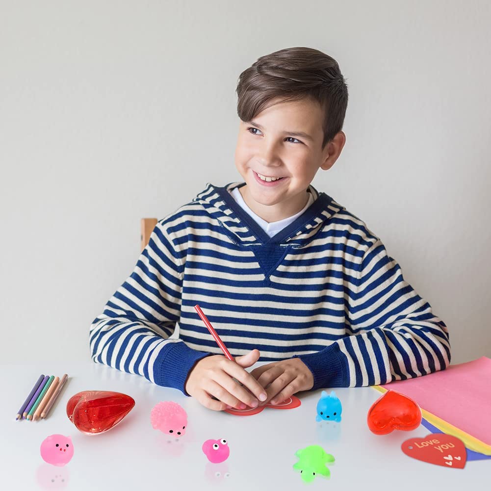 With 28 glow-in-the-dark mochi squishy toys, 28 red heart boxes and 28 Valentine's Day cards with "love you" messages on them, you can be sure to make them smile. Each soft toy comes in an individual package.
