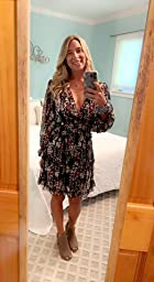 Dokotoo Womens 2023 Spring Summer Deep V Neck Ruffle Long Sleeve Floral Print Mini Dress