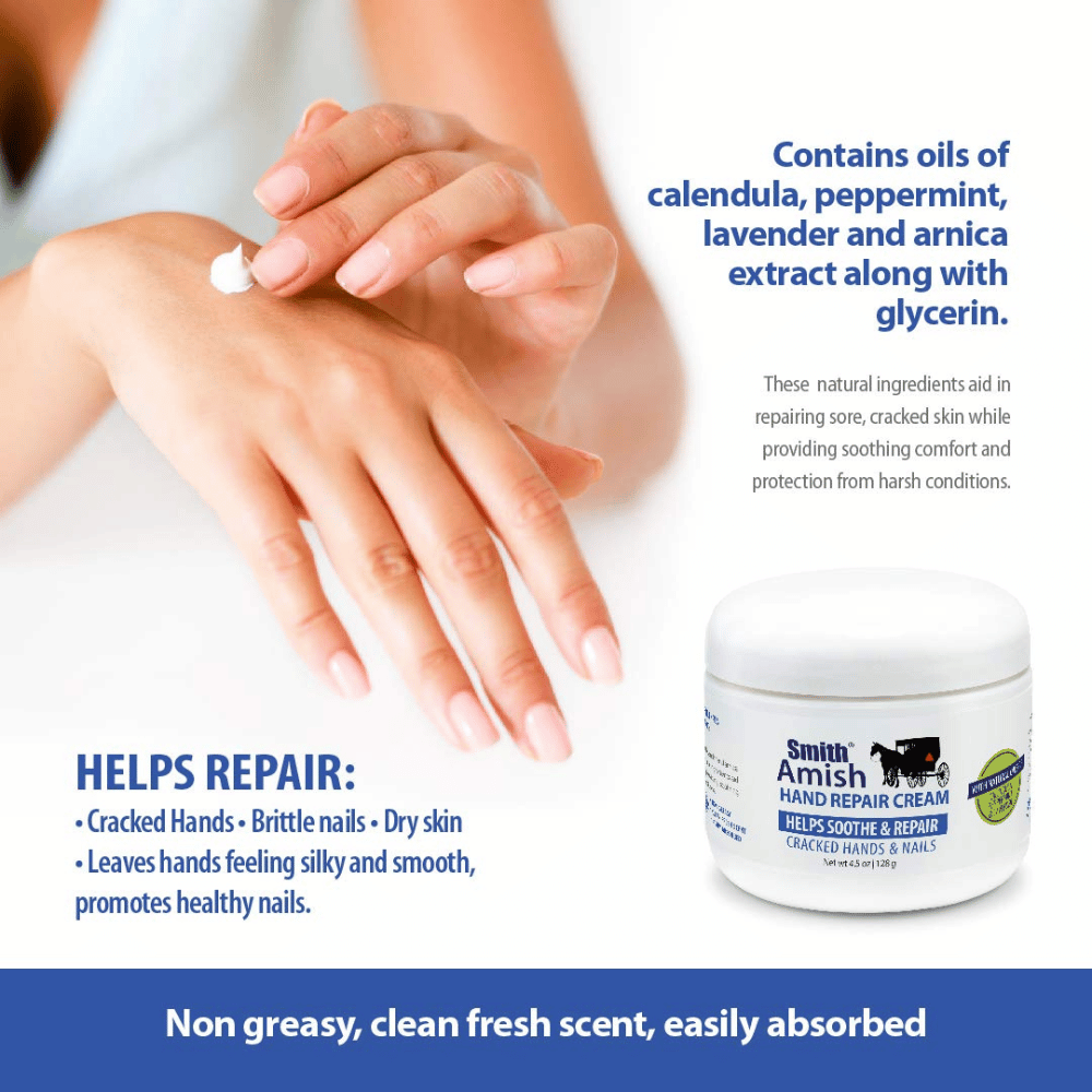 Smith Amish Hand Repair Cream is the perfect solution for rough hands and feet. This super hydrating cream is enriched with humectants to help keep your skin looking hydrated and healthy.