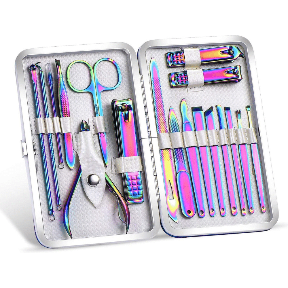 This Rainbow Manicure Kit is the perfect choice for anyone looking nail tools. This kit provides everything you need to keep your fingernails and toenails looking and feeling their best.