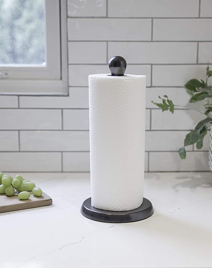 Umbra Tug Modern Stand Up Paper Towel Holder is not only stylish, but also functional. It has a weighted base that ensures it stays in place while you tear away sheets. Plus, it's made with durable materials that are sure to last you for years to come.