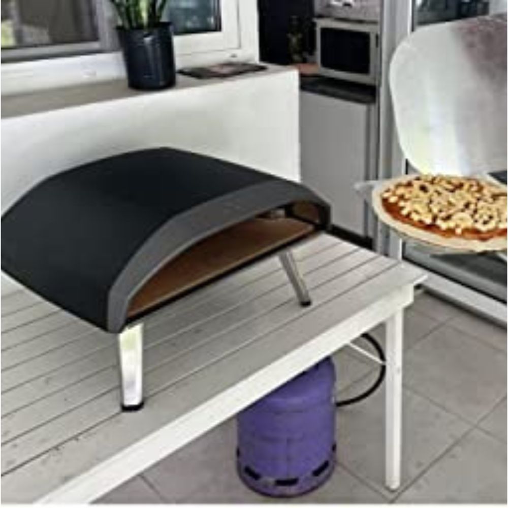 Plus, it's easy to use and ready to go straight out of the box. Simply unfold the legs, insert the pizza stone baking board, connect it up to a propane gas tank and you’re ready to go. Featuring instant gas ignition, you'll be cooking your favorite pizzas in no time!