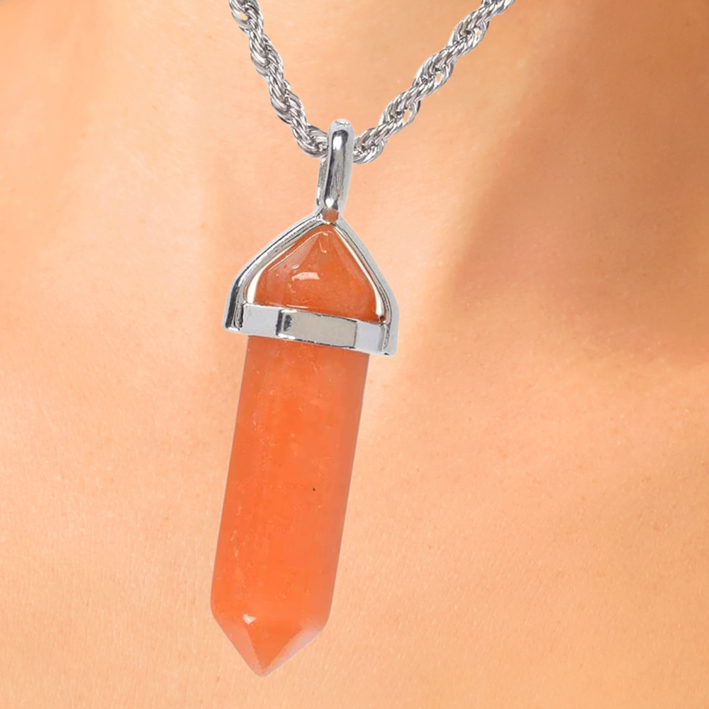 For those enchanted by healing stones and crystals, the Orange Aventurine Crystal Necklace is a must-have accessory. This exquisite necklace features an orange aventurine crystal pendant on a 20" stainless steel rope chain, encased in an elegant iron gift box for safekeeping. The one of kind look adds to its charm. Plus, each item comes with its own distinct code that is verified before shipping for your peace of mind! If you're looking for something special to add a bit of sparkle and energy to your look, this necklace is the perfect choice. So, wait no more--add the Orange Aventurine Crystal Necklace to your collection and start seeing the benefits of this beautiful stone today!