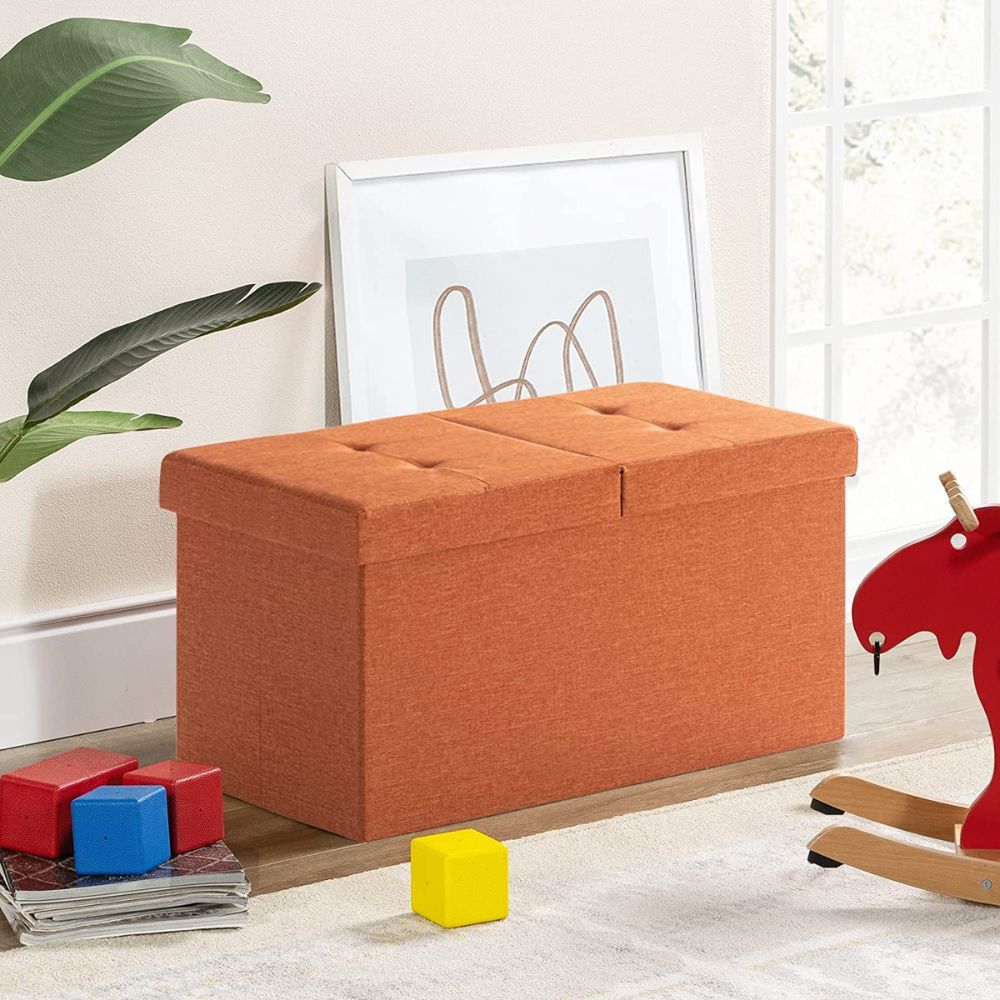 Otto & Ben’s Mellow Storage Ottoman is the perfect addition to any home décor. The vivid orange color and classic tufted lid make it a stylish piece of furniture for any room.