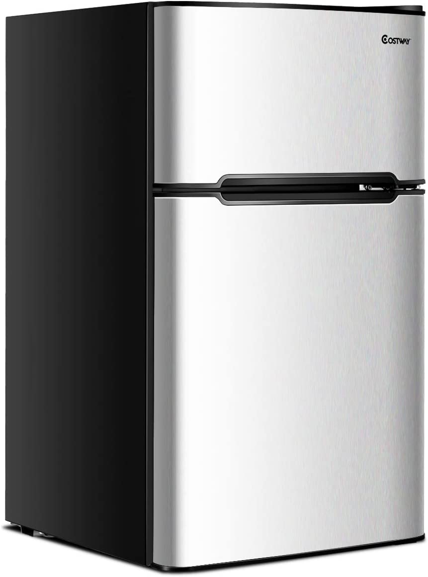 COSTWAY Compact Refrigerator is the perfect outdoor refrigerator for those who want to keep their food fresh. With a powerful performance and a two-door design, this refrigerator will keep your food perfectly chilled and frozen solid. It also features a crisper drawer for keeping your fruit and vegetables fresh and comes with a removable glass shelf for organizing taller items. Plus, it has a 1 cu. ft. freezer capacity, giving you plenty of room to store frozen foods.