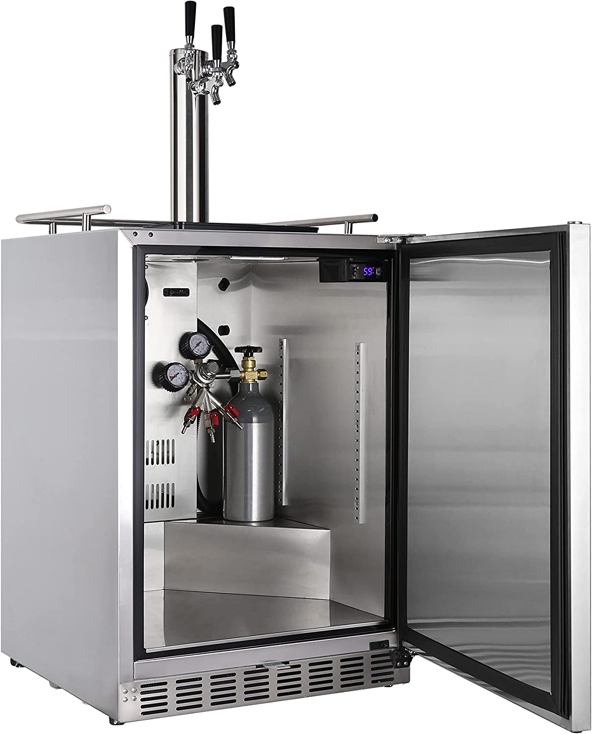 Not only is the HCK 24 inch Universal Outdoor Beverage Refrigerator perfect for beer lovers, but it is also incredibly versatile and can be used as a freestanding or built-in kegerator/refrigerator. With its fully reversible stainless door, you can easily switch the orientation of the door to fit your needs. So why wait? Get your own HCK 24 inch Universal Outdoor Beverage Refrigerator today and start enjoying cold draft beer straight from the tap!