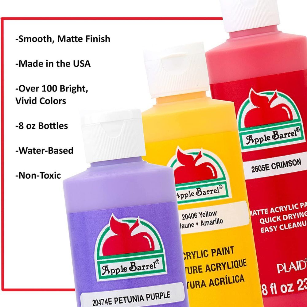 Use this versatile paint with acrylic paint brushes, stamps, stencils, or sponges for an extraordinary finish. Enjoy excellent coverage on all your arts and crafts when you paint with Apple Barrel Acrylic Paint.